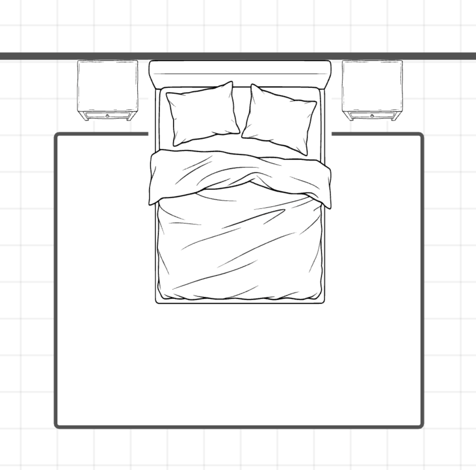 Do not put the rug all the way against the wall behind the headboard. Your nightstands should sit on the hard floor.