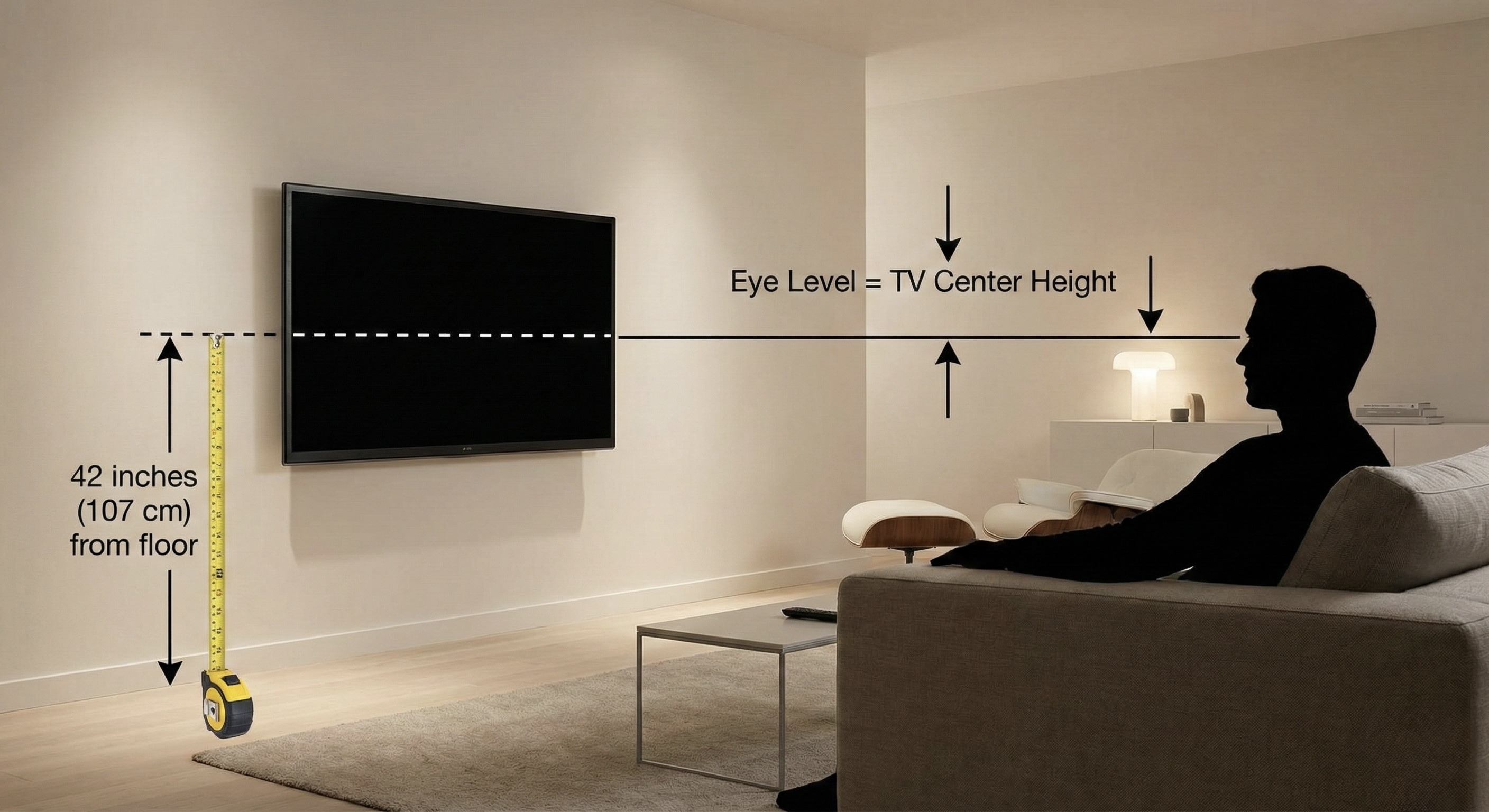 The Rule: The center of your TV should be 42 inches from the floor.